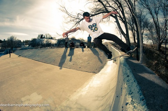 No sub needed on this one. Max rock to fakie. Photos by Dean Barnes Photography.