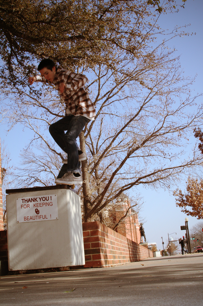 Chad visiting his brother in Oklahoma January 21, 2011Photos, Team Newsmeatball At least he’s still working on his ‘Josh Steele’ ollies. Photos by his brother.Doing his best to keep OU beautiful. Nosegrind.
